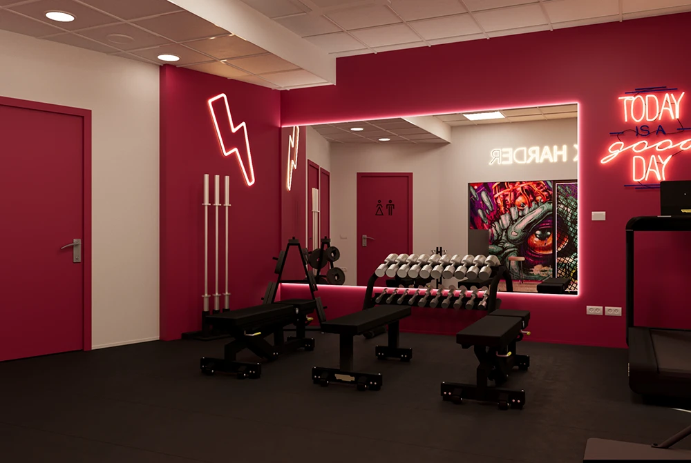 Questa palestra non è solo uno spazio per l’allenamento: è un’esperienza visiva e sensoriale pensata per sorprendere e motivare chi la frequenta. Il progetto nasce dalla sfida di trasformare un ambiente stretto in un luogo funzionale, accogliente e pieno di energia, senza rinunciare a stile e personalità.