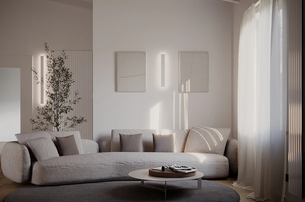 Il risultato è un living raffinato, funzionale e autentico, dove nulla è lasciato al caso. Gli elementi decorativi sono ridotti all’essenziale, ma ogni dettaglio – dalle texture dei tessuti alla disposizione dei volumi è studiato per creare un ambiente armonico, dove convivono estetica e benessere.