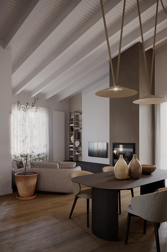 In questo progetto di restyling abbiamo lavorato su un living dalla struttura architettonica interessante, caratterizzato da ampie altezze, luce naturale diffusa e un desiderio espresso dai clienti: trasformare lo spazio in un ambiente caldo, minimale ma profondamente accogliente.